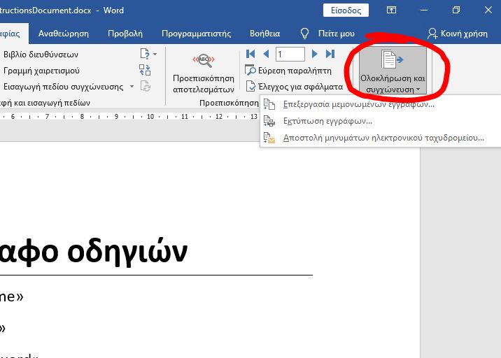 Βήμα 8 – Ολοκληρώστε την συγχώνευση αλληλογραφίας.